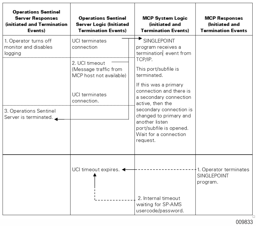 Table B-6 shows the interface termination and recovery sequence between the Operations Sentinel server and the interface software.