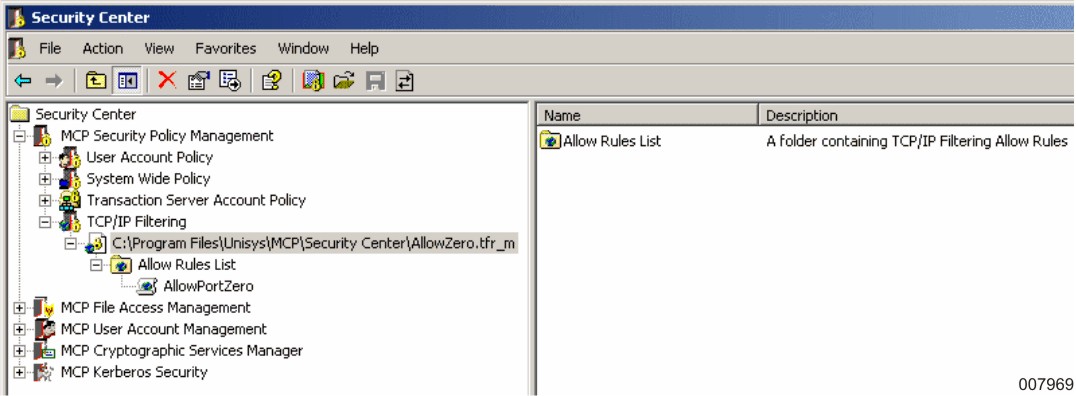 The new rules file is listed under the TCP/IP Filtering node on the scope pane.