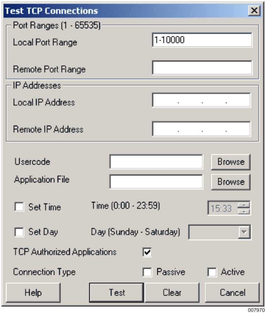 Test traffic on the local port range of 1 to 10000, also making sure to select the TCP Authorized Applications check box.