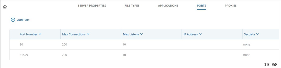 Enter appropriate values in the Max Listens (8 is the default and 2000 is the maximum) and Max Connections (2000 is the default and 10000 is maximum) boxes. The defaults for these boxes are different for SSL/TLS ports than they are for non-SSL/TLS ports.