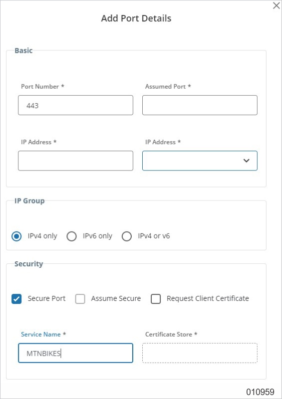 Enter 443 in the Port Number box, select Secure Port, then enter MTNBIKES in the Service Name box.