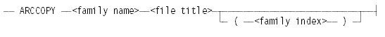 The family name indicates the name of the family whose directory is to be copied. The file title specifies the new name for the backup archive directory when it is copied. If the specified file title already exists, the system replaces it. Unless you use the syntax ON <family name>, the system automatically copies the archive directory to DISK.