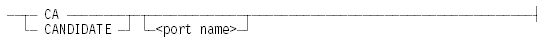 The CA (Candidate) command displays the BNAV2 candidates for those unmatched local subports and remote subports whose HOSTNAME attribute equals the local host name. A candidate is a subport that is offered for use but not yet matched (connected) to another subport.