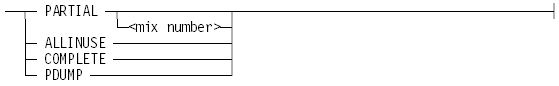 Interrupts processing on the system and initiates the memory dump process, which dumps the entire contents of memory or all in-use or partial memory. The type of memory dump depends on the memory dump option included with the dump request. If no option is specified, a COMPLETE memory dump will be taken. The setting of the MDT option does not affect the type of memory dump for operator requests.