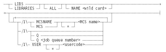 Displays one or all library names that contain the specified wild-card string, including any that were suppressed.
