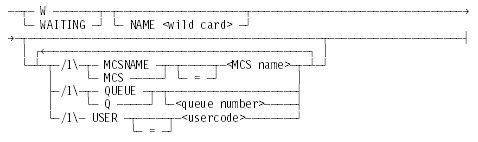 The W (Waiting Mix Entries) command displays any tasks that need operator or user action because they are suspended on an RSVP condition. The text of the Wait message is included in the display.