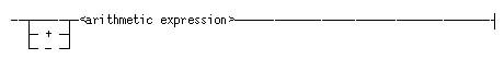 In the following railroad diagram, either the plus sign (+) or the minus sign (−) can be entered before the required variable <arithmetic expression>, or the symbols can be disregarded because the diagram also contains an empty path.