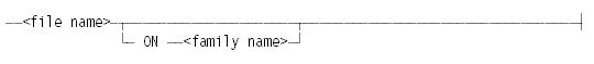 A file title containing the suffix ON <family name> specifies a family other than the default family (DISK).
