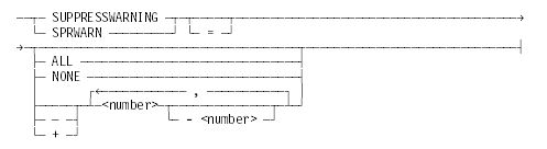 The SUPPRESSWARNING command displays or modifies the list of warning messages to be suppressed. If the value associated with a message is contained in the suppression list, the text of that message is not displayed on the ODT or, in the case of an interactive task, on the remote terminal. For detailed information about warning numbers and messages, refer to the System Messages Manual. Message suppression applies to all tasks.