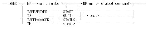Specifies that the NP unit-related command is to be sent to the network processor identified by the unit number. The semantics of the NP unit-related command, as well as the responses to these NP unit-related commands, are defined by the NPSUPPORT library; the text of the NP unit-related command is not inspected by the CONTROLLER or the MCP. The NPSUPPORT library must be initialized before the SEND NP command can be used.