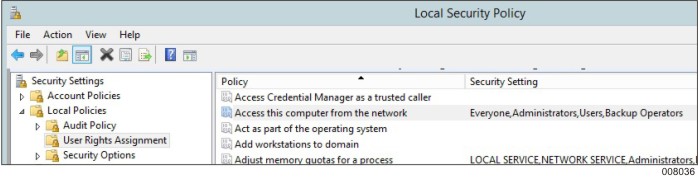 Open Local Security Policy. Check which user group has the rights to access the server from the network.