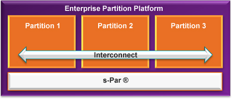 The Interconnect does not just provide a high-speed connection between enterprise partition platforms. s-Par® firmware and Interconnect firmware provide the high-speed connection between partitions within a given enterprise partition platform as well.