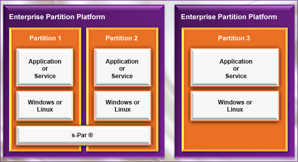 Unisys Secure Partitioning (s-Par®) is firmware that provides the capability to run multiple operating environments concurrently on the same computer hardware: for example, Linux and Windows operating environments. Unlike virtualization technologies and virtual machines, each s-Par operating environment has dedicated hardware resources—instruction processor cores, memory, and input/output components. Each s-Par operating environment is referred to as a secure partition (or just “partition,” for short). A secure partition is sometimes referred to as a hard partition.