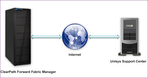 Unisys Call Home is a software application that automatically detects system fault events and transmits an Electronic Service Request (ESR) packet that contains the failure details to the Unisys Support Center. The Call Home application is triggered by the specific events logged in the Event Log and also at any specific request sent by the user. The Call Home application is a communication link established between the Fabric Manager and the Unisys Support Center.