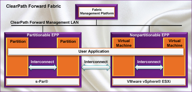 A nonpartitionable enterprise partition platform that is included as part of the fabric can run VMware vSphere® ESXi software. All virtual machines created by that instance of VMware vSphere® ESXi software that are configured to use the appropriate network can participate as modules in a multi-partition and/or multi-platform user application.