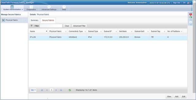 When creating (adding) a secure fabric, you give the secure fabric a name, specify networking details, select a Quality of Service level, and select one of the unique pre-existing identifiers for secure fabrics, known as subnet tags. (Subnet tags are known in InfiniBand as PKEYs).